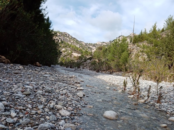 Great tour through the Makkaris canyon!To get started, you should park your car at the end of the proper road (where the dam used to be). Get there with proper hiking shoes as the path is the riverbed. I‘d recommend to only hike to the marvelous canyon + 1 additional kilometer as the forest is burned which makes the second part of the circular trail quite ugly - so turn around then!If there should be water right at the parking spot, turn around. Most likely, the canyon will be flooded (should only happen during winter times).Enjoy:)