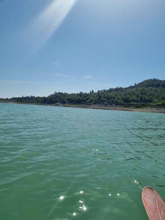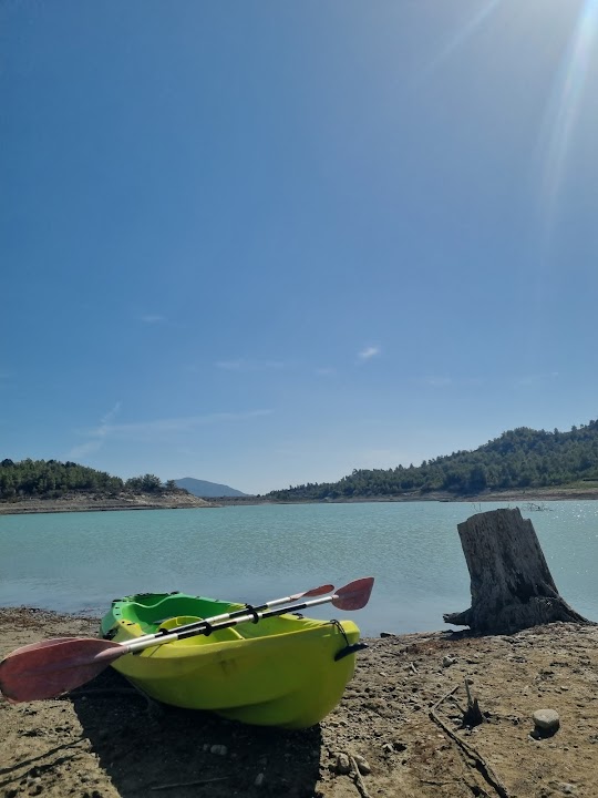 Beautiful lake with incredibly nice owners. At first you think you went down for nothing. But if you stop and walk down you come to a great dam lake with great, very cheap activities. Canoeing for 7.50 euros, pedal boat riding for 8 euros, zipline and much more. Good little things to eat and cute animal residents. The church sinks every time the reservoir is completely filled and only appears in the summer months. You should watch it and then drive home via the west coast