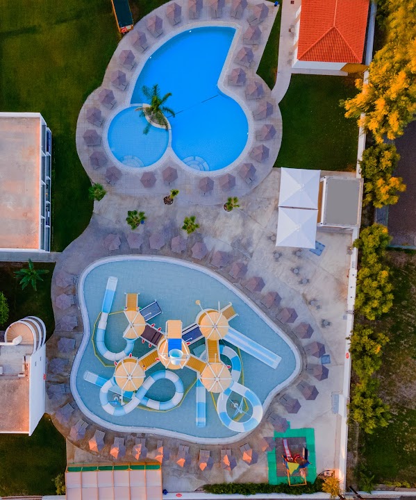 The resort offers excellent facilities for relaxation and recreation. The pools are described as "fabulous" and "great," with plenty of sun loungers available. There's also a great waterslide, popular with families. The hotel boasts its own clean beach, located just a minute's walk from some rooms. The sea itself is noted for being warm throughout the summer, often calm, and boasting crystal-clear water. While one reviewer noted the pool water could be cold in the last week of the season (October), the sea remained a warmer alternative.