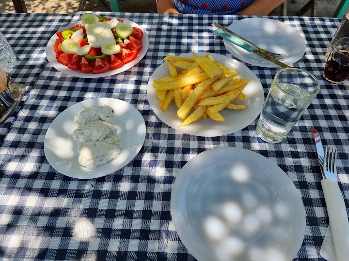 If you're looking for an authentic Greek experience, Café Paradise is a must-visit. Nestled down a charming, windy road leading to the beach, this quaint spot is the epitome of Greek hospitality.Upon arrival, you're warmly greeted by a lovely old man who takes your order with a friendly smile. The ambiance is both rustic and inviting, with beautiful outdoor seating shaded by lush greenery and overlooking the serene blue sea.The food is both delicious and affordable. We had the Greek salad, which was surprisingly giant and fresh, and the tzatziki was a perfect complement. The overall vibe is relaxed and unhurried, making it an ideal spot to unwind and soak in the peaceful surroundings.However, if you're in a rush or looking for a big meal, this might not be the place for you. The charm of Café Paradise lies in its laid-back atmosphere and simple, yet hearty offerings.Highly recommend for anyone seeking an authentic and tranquil Greek dining experience!