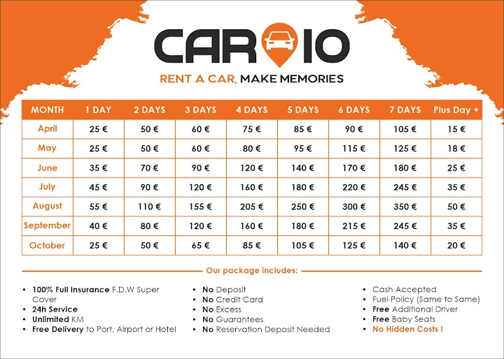 We got a rent a car from Cario in Rhodes island. Great prices , fast process helpful staff. Thank you !!!