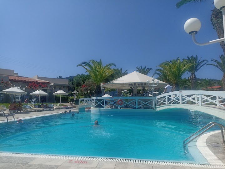 Disappointed. Hotel is definitely not 4 stars. 2 star at the most.Pros: Room was good quite modern and air con worked well, rooms cleaned daily. Staff were very friendly and worked hard, beautiful landscaping. Great bar by the main entrance ran by Abraham who was very friendly although you had to pay for the drinks from this bar and it wasn’t cheapThere was a small games room with pool tables and arcade type machines which again you had to pay forThere is a bus stop outside the front of hotel where we were able to travel to Rhodes main town which was a great day out. At the front of the hotel is a great little shop selling snacks etc. There is a pebbled beach near by to the hotel which is around a 15 minute walk with restaurants near by.Cons: all inclusive very poor. Food and drink served in dining hall really poor sometimes inedible, drinks not great either. Water machine hardly stocked ended up buying bottled water from onsite shop everyday. Only one bar out of the 4 open on the complex were included in the all inclusive and the queue was ridiculous. Hotel entertainment for kids was non existent other than one man doing it all. Hotel really understaffed. But most importantly the plumbing situation in the rooms: no hot water for the length of our stay and no water at all for two days of our trip!!It was really difficult to get a sunbed around the pool had to resort to going to the pool at 5am one morning just to try and get oneHotels pools and the areas around them are not cleaned properly, really dirty and we actually fell ill with suspected parasite from the waterNeedless to say we won’t be returning