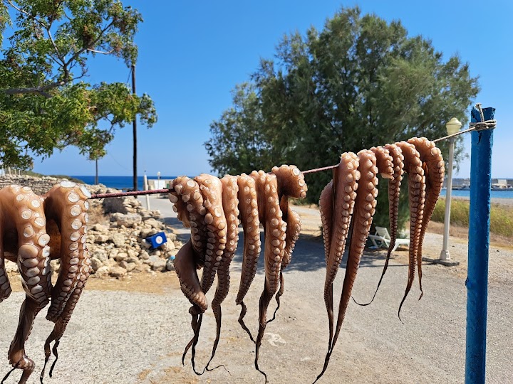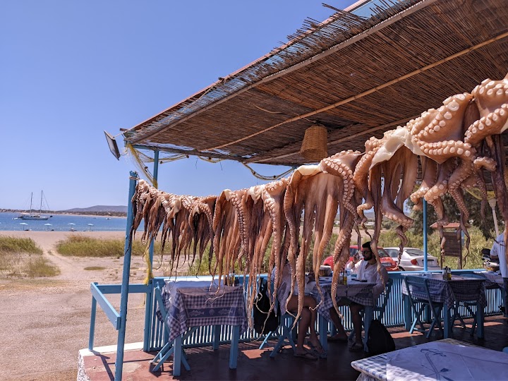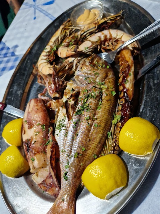 Here is a typical sea side restaurant with humble flair. If you are looking for fine dining then this is probably not for you. However, if you are looking for fresh fish for dinner then this location is a must.Located near the harbour, on the windy coast, this restaurant is what I imagine a typical greek local restaurant would be. The staff are very friendly and speak English, which helps as the menu ist a little jumbled up!However you are invited to the kitchen where the catch of the day is on display. The different types of fish are explained, if you are not too certain of the types you’re looking at. Once you have made your choice, the fish is prepared ie descaled and ready for the BBQ.We chose sea bass, octopus and giant shrimps, freshly cut chips, a greek salad and tzatziki.I would give top marks but I have deducted a few points just so you know what to expect when you arrive. The freshly BBQ‘d fish makes up for the lost points on ambience.Highly recommend!