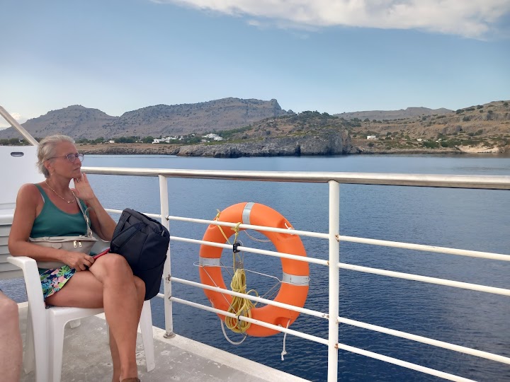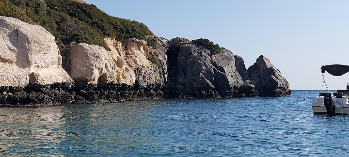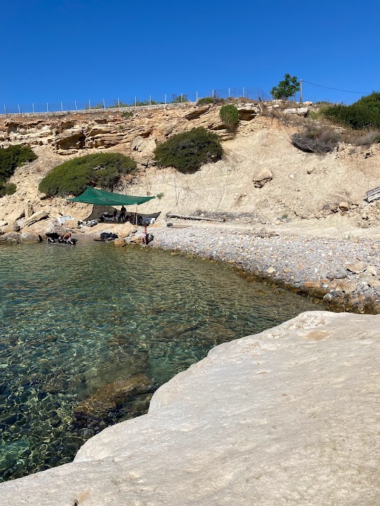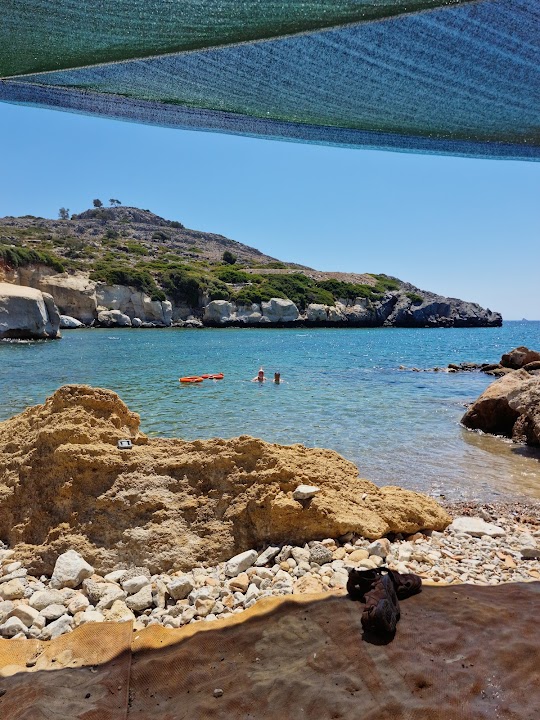 Quiet, beautiful bay 10 min drive from Lindos. Tarmac road all the way there and a small car park (max 10 cars) on the aide of the road. Don’t go there if you expect a sanitised beach with sun beds. This is at the opposite end and one of the few beaches left untouched in Rodos. No sun beds, no sandy beach, no toilets, no bars nearby. Gorgeous fish and clear waters. A few options to place sun towels - pebbles, big rocks on the right or massive white rock/ sand formation on the left.