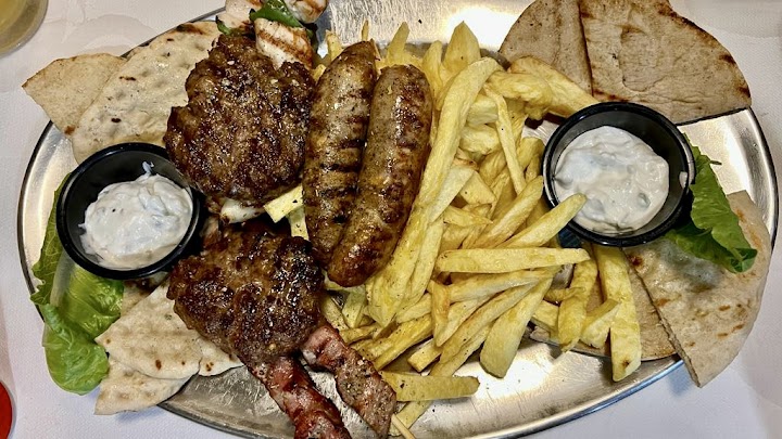 - Gyros (Pork & Chicken): Both pork and chicken gyros are highly recommended. They are described as having "huge portions" and a "generous amount of meat." The meat is noted for being "cooked perfectly" and "clean and good" (especially the chicken, which was all breast meat). One reviewer found a mixed gyros platter for two, along with drinks, to be an exceptional bargain.