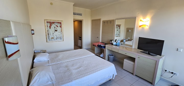 What an absolute blast i had coming here!🤩The reception staff was so kind and helpful, as love holidays managed to mess up my room, which wasn’t the first time it had happened so watch out for that through love holidays. However reception sorted it and got me the room was an additional charge but so worth it!The breakfast don’t get me wrong wasn’t the best option, we didn’t eat any other meals here as we ate out instead, so i can’t comment on much food, but for the breakfast if you’re not a fussy eater you’d be fine! The cocktail bar at the hotel was really really good! Very more for kids not sure if it was cause we went out of season.. possibly. The supermarket on site was mint! and the lady who works there id genuinely pay the price again to go back and see her! What an amazing woman🤍Rhodes is so beautiful and this hotel really made the effort to fit in! Loved my stay here and would 100% return… people are so unrealistic about their reviews on hotels… but this one was absolutely unreal👏👏