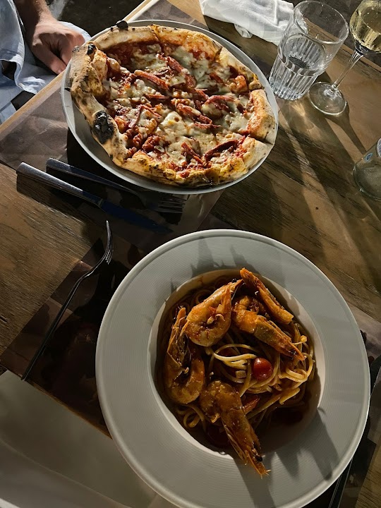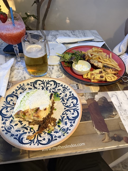 The food at Mythos generally receives positive feedback, often described as delicious and good. The menu offers a range of Mediterranean and Greek dishes, along with pizza. While many reviewers found the food to be a highlight, a few guests noted that some specific dishes, such as the lobster pasta, could be improved, tasting predominantly of tomatoes, and that overall, the food was "okay" compared to other Lindos establishments for some. However, dishes like fried calamari and dolmades have been mentioned. It's a place where the overall experience, especially the view and service, often elevates the meal.