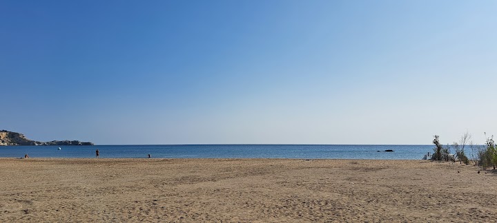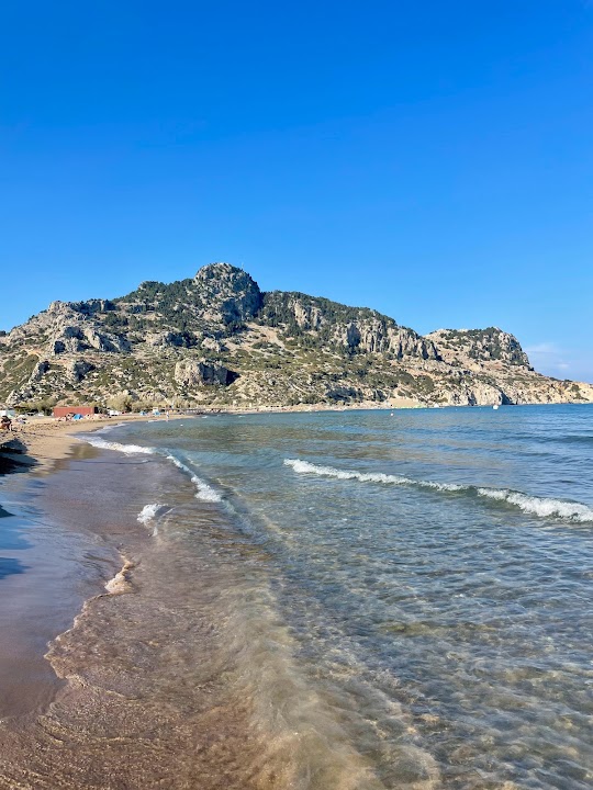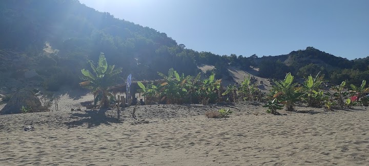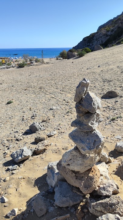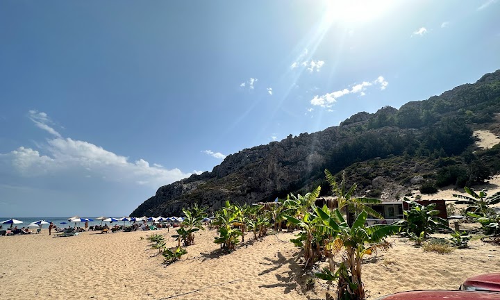 This place is Fire! No comparison with the naked beach in Faliraki! No hotels nearby. Everything is very harmonious and beautiful!But there is a cafe that looks like a barn, and with a lot of rubbish behind it, with restaurant prices - 5 € for a bottle of beer!!!, I understand it would be a remote place, but here everything is in order with access.There are no problems with parking.It's a 15-20 minute walk from the bus stop, if you're off the highway. There is a bus directly to the beach (on display TSANBIKA BEACH). It travels rarely from Faliraki and makes a large circle to Kolympia.An ideal beach along all lengths and mountains!