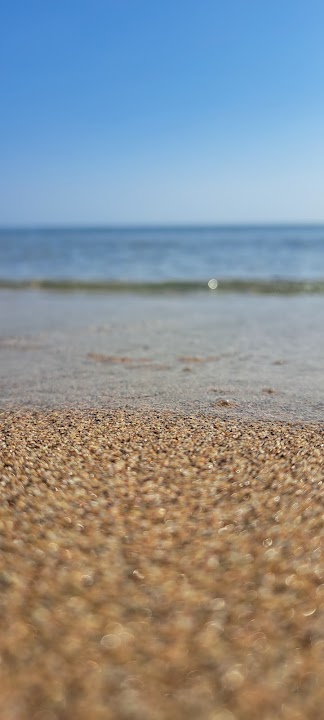 Great idea with this beach. On the right end there is a great naturist eclave. Fabulous water, golden sand, rocks nearby. You can fully enjoy the charms of naturism. Free parking, deckchairs for rent, a small bar - a bit further on the textile part there are other bars, and at the other end - a shop, bars, water attractions.The beach is long, perfect for walks along the shore.For us it was BOMB