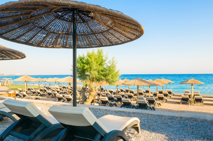 Awesome hotel looks so imposing especially when lit up in the evening. Very clean good friendly staff. Bespoke internal restaurants are serving some lovely dishes. The Pizzas are huge. Pool is clean and safe plenty of Sun loungers with fixed parasols so make sure you pick wisely with where the sun travels through out the day or you maybe in the sun or in the shade unless u move your lounger. Rooms are adequate but try to avoid the rear hotel rooms or you will be looking at trees and a side of a large hill. Roof bar does good entertainment and there’s a good breeze in the evening. Explore outside the hotel building and you will find plenty of extra private seating and dining locationsDefo worth a visit and it’s only about 10 euros by taxi to Rhodes Town