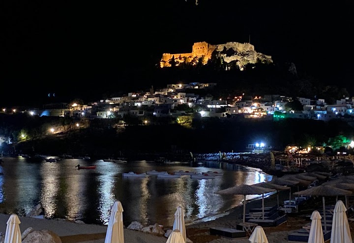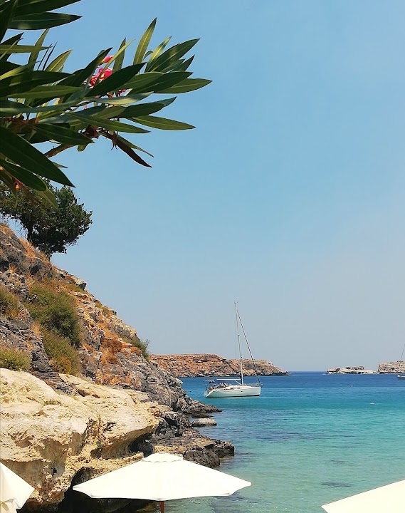 Our days at Palestra were the highlight of our holiday. We liked it so much we went back for our last day in Rhodes.This place is a all around 100%.It sits at the end of the beach making it a bit more calm and the water is simply amazing. The views to the Lindos acropolis are also stunning. They rent sunbeds and umbrellas that provide great comfort for those who seek it.Fantastic food at the taverna. We loved every dish we tried the two times we were there. And the people are all so so lovely.Couldn't recommend it more.