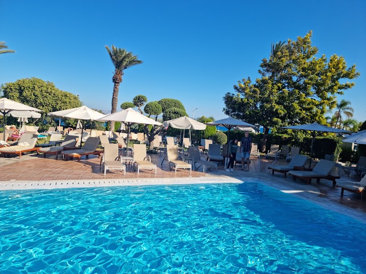Positioned ideally next to the coastline, the hotel boasts a brilliant location with warm weather. Its proximity to a private beach and its convenience for visiting Rhodes Town are highly appreciated by guests. The design integrates various amenities, including a rooftop pool and bar, all connected within one building, enhancing the overall guest experience and offering great views.