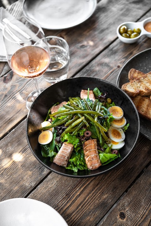 Main dishes are often accompanied by perfectly cooked boiled new potatoes and green beans. The bar offers a selection of unique summer cocktails, and a bottle of sparkling Rosé is available at a reasonable price of €45.