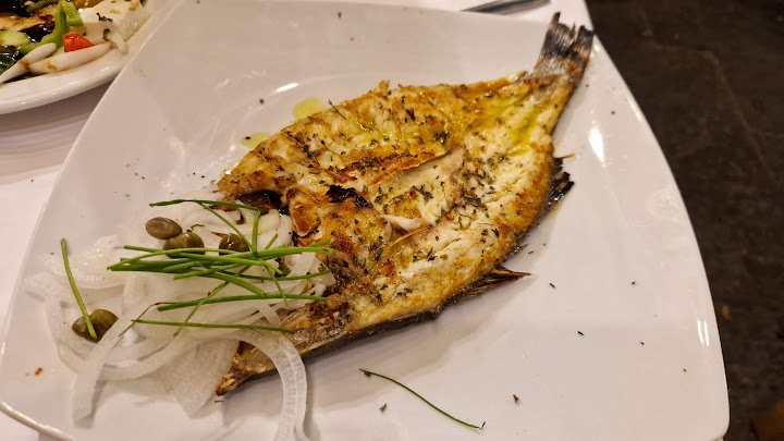Our host recommended this restaurant as a good fish place, but we were let down by the food and service. Despite being among the first guests, it took a long time to get a table, menus, and place our order. The grilled octopus was terrible, and they even forgot to bring one of our dishes. We had to request the check multiple times. In addition to the disappointments with the food and service, the dishes served were quite small. The only aspects we truly enjoyed were the Rhodos bread and sea bass. Unfortunately, these were the only highlights in an otherwise underwhelming dining experience at the restaurant. Considering all this, I don't recommend this restaurant; the one next to it is slightly better.
