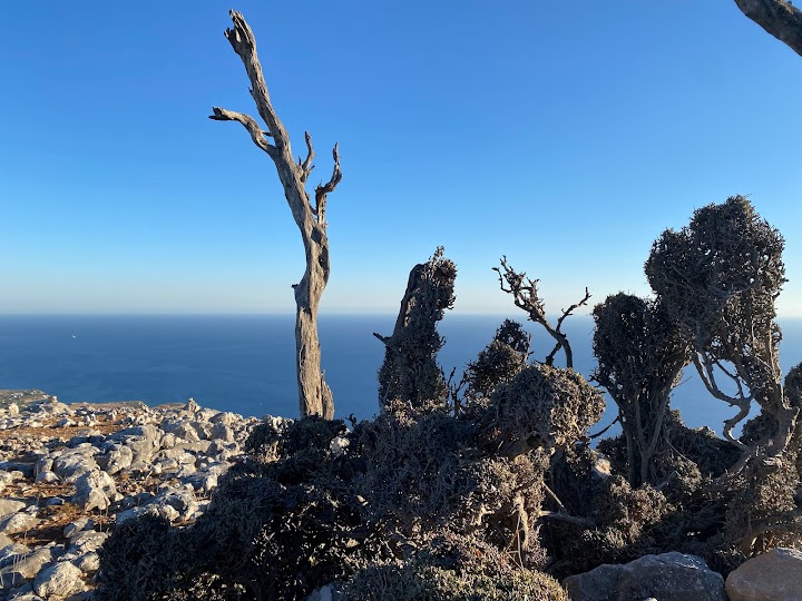 Excursion to be done in the early morning or late afternoon, there are no paths, only traces of goats. I went up from the west, from the road that comes from Làrdos and leads to Pèfki beach