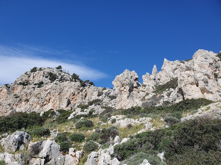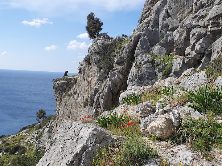 The place is a tourist route around the mountain with climbing area, cliffs and beautiful views near Faliraki.